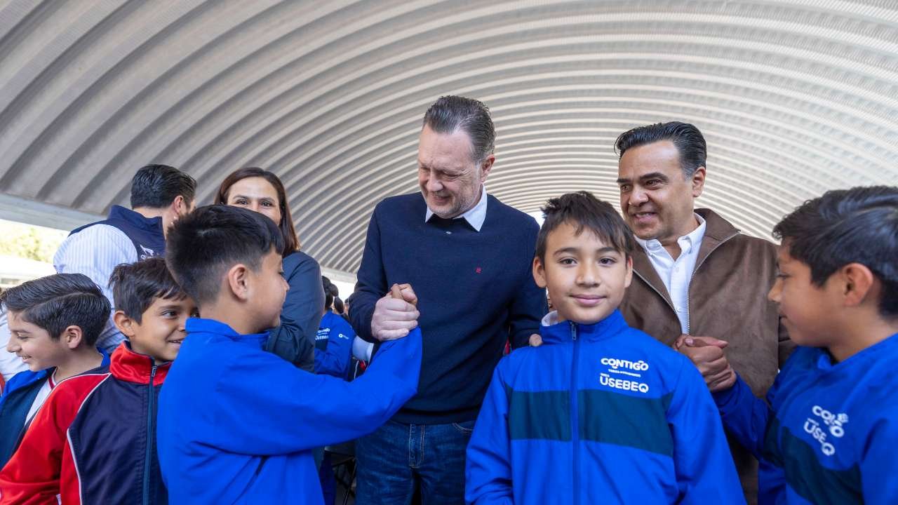 Mauricio Kuri González y Martha Soto encabezaron la entrega de la reconstrucción de un edificio en la escuela primaria Melchor Ocampo en su turno matutino
